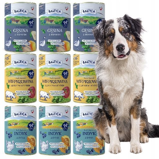 BALTICA MOKRA KARMA ZESTAW NOWCH SMAKÓW 9X400 INDYK WIEPRZOWINA GĘSINA