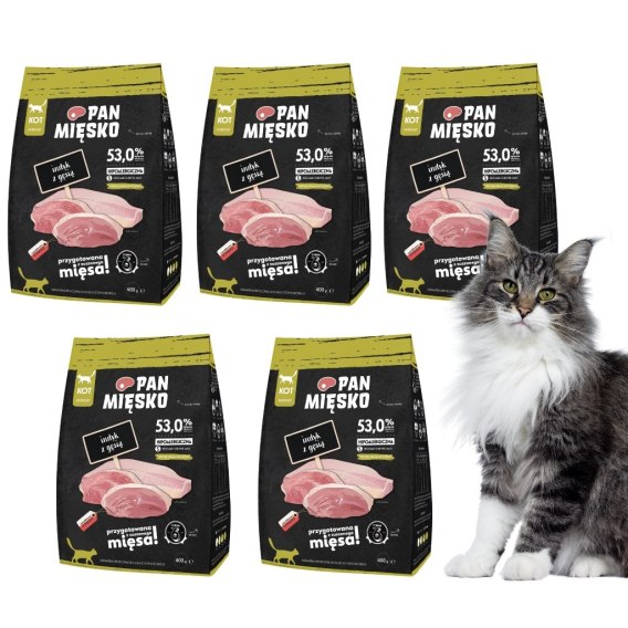 Zestaw Pan Mięsko karma sucha dla kota 5x400g Wołowina, Cięlęcina, Kaczka, Indyk, Kurczak, Gęś