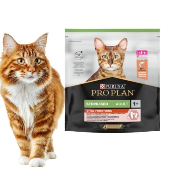 🐱 PURINA PRO PLAN Vital Functions Sterilised Adult z łososiem 400 g to zaawansowana, pełnoporcjowa karma dla dorosłych kotów po sterylizacji. Receptura została opracowana na bazie badań naukowych, aby wspierać kluczowe funkcje organizmu - od pracy mózgu, przez odporność, aż po zdrowie układu moczowego.