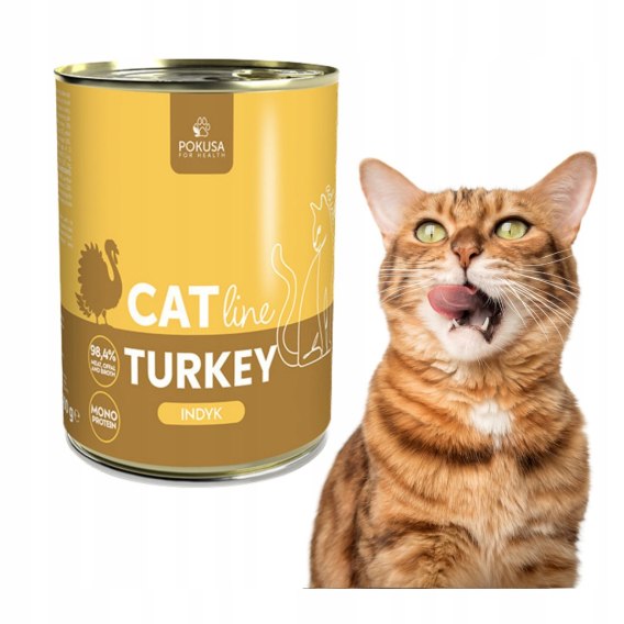 CatLine Indyk Monoprotein polskiej marki Pokusa to wysokiej jakości mokra karma dla dorosłych kotów, oparta na jednym źródle białka – indyku.