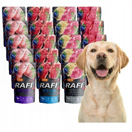 Rafi dedykowana jest psom, które osiągnęły dojrzałość fizyczną. Można ją podawać wszystkim dorosłym psom, bez względu na wielkość czy rasę. Psi seniorzy i psiaki ze słabym uzębieniem świetnie sobie z nią poradzą.