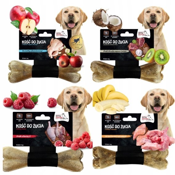 kość jako źródło błonnika, magnezu i potasu, w której nadzieniu znaleźć można mięso z jagnięciny, kokos i kiwi,
