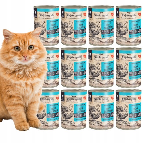 • Wiejska Zagroda dla Kota ZESTAW 12x400g INDYK Z ŁOSOSIEM