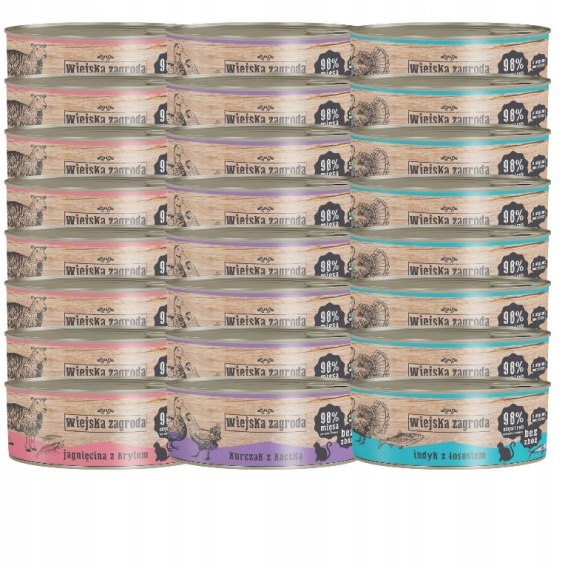 WIEJSKA ZAGRODA Karma mokra dla kota mix smaków 24 x 85g bezzbożowa zdrowa karma