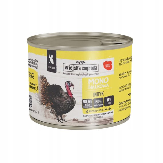 Wiejska Zagroda mokra karma MONOBIAŁKOWA KOCIĘTA Indyk 200g