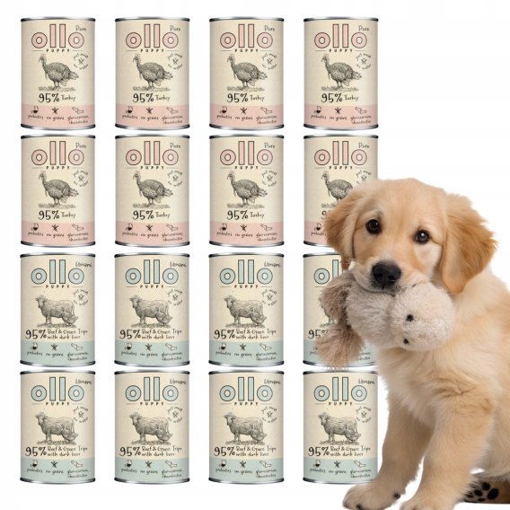 ZESTAW OLLO PURE PUPPY WOŁOWINA INDYK 16X400G MIX DLA SZCZENIĄT KARMA MOKRA