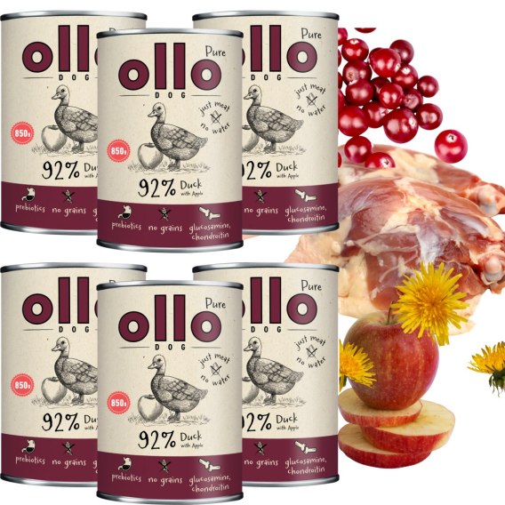 OLLO PURE DUCK, ADULT, MONOBIAŁKOWA MOKRA KARMA DLA PSÓW, KACZKA Z JABŁKIEM 6X850g