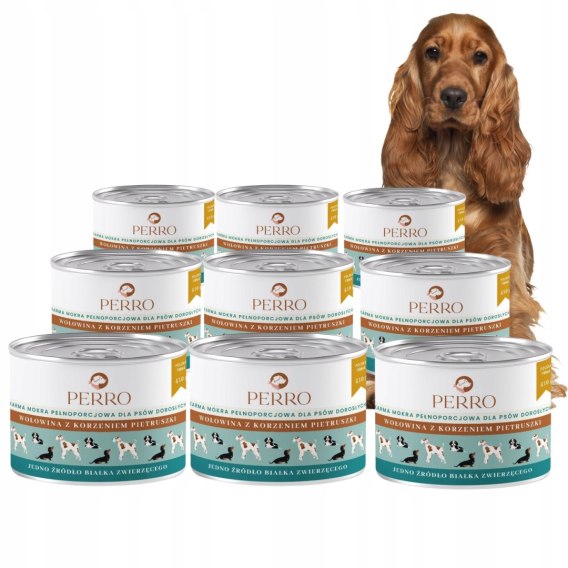 • ZESTAW Perro Monobiałkowa Karma Mokra Wołowina z Pietruszką 9X410g dla Psa